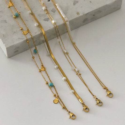 18K Gold Plated Sea Ocean Series Vintage Anklet Waterproof