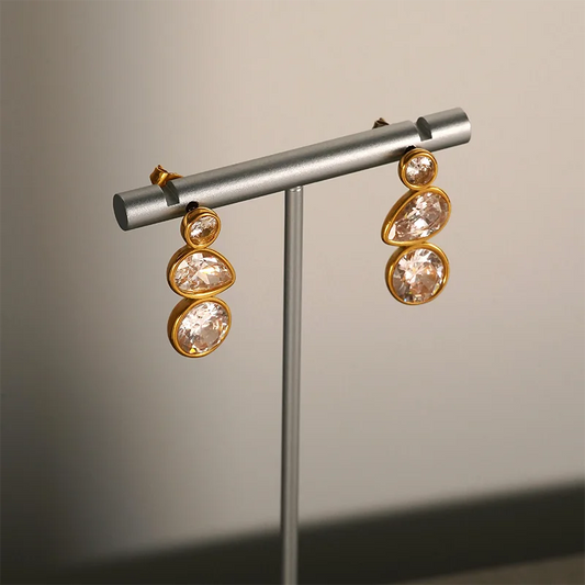 Flower Stitching Drop Earrings Waterproof 18K Gold Plated