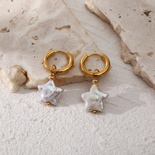 18K Gold Plated Freshwater Pearl Waterproof Dangle Earrings